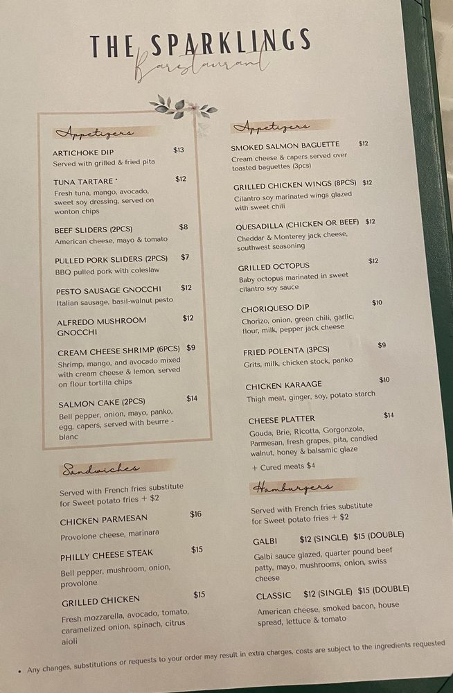 Introducing The Sparklings, a New American Sandwiches spot in Las Vegas that offers a range of amenities including reservations, delivery, and vegan options. This intimate and classy restaurant is perfect for any occasion, from dinner to late-night snacks. The reviews rave about the amazing food, friendly service, and cool vibes. Highlights include the flavorful chicken piccata with crème sauce, the tasty shrimp linguine, and the generous portion of lasagna. The ambiance is inviting and sophisticated, with impeccable service and a great happy hour menu. Whether you're looking for a date night spot or a place to catch up with friends, The Sparklings has something for everyone. Book a table or grab takeout - either way, you won't be disappointed at this top-notch restaurant.